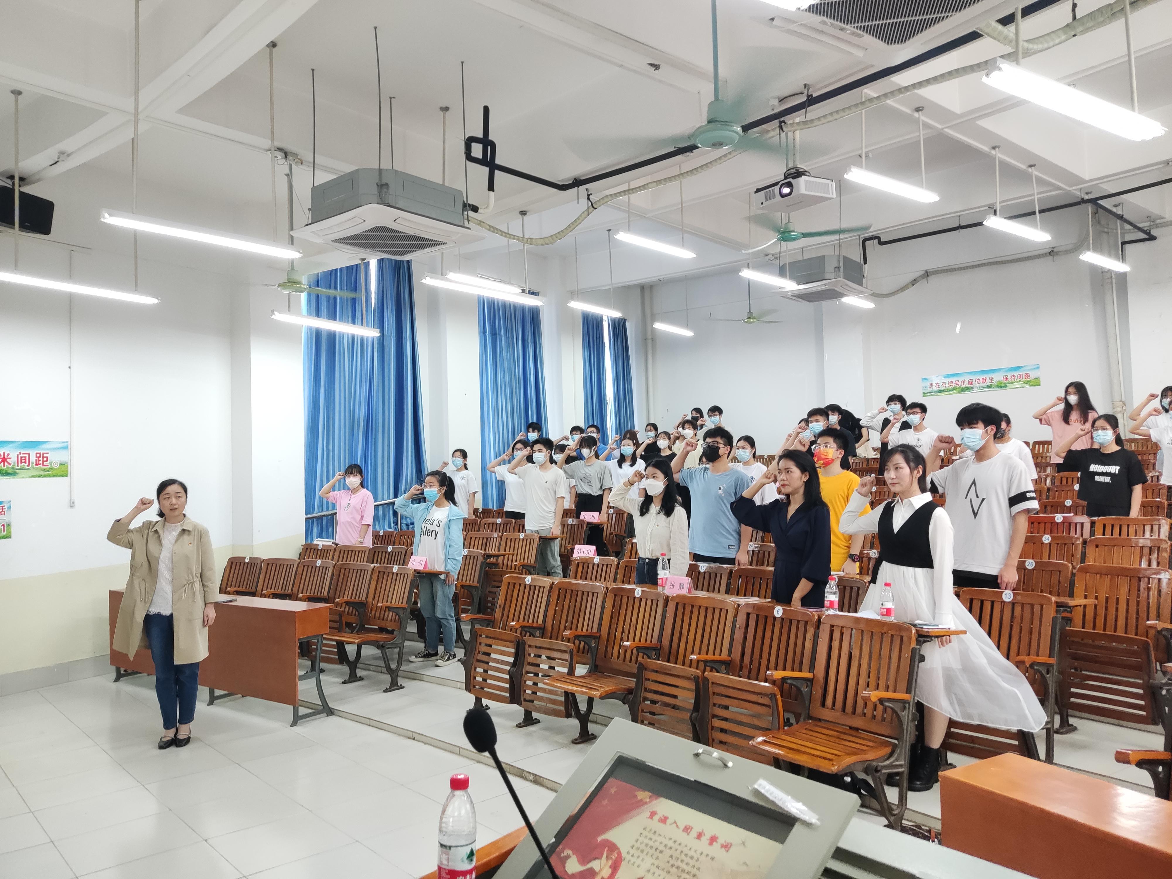 张老师以《牢记入团初心,勇担时代使命》为主题,围绕共青团的发展历程讲述了共青团按照党的纲领和要求,坚决贯彻党的路线、方针、政策,围绕党和国家中心工作,开展适合青年特点的活动,促进青年的进步成长,为推进社会主义现代化建设事业作出了重要贡献。并带领团学班的学员们重温入团誓词,不忘初心,砥砺前行。