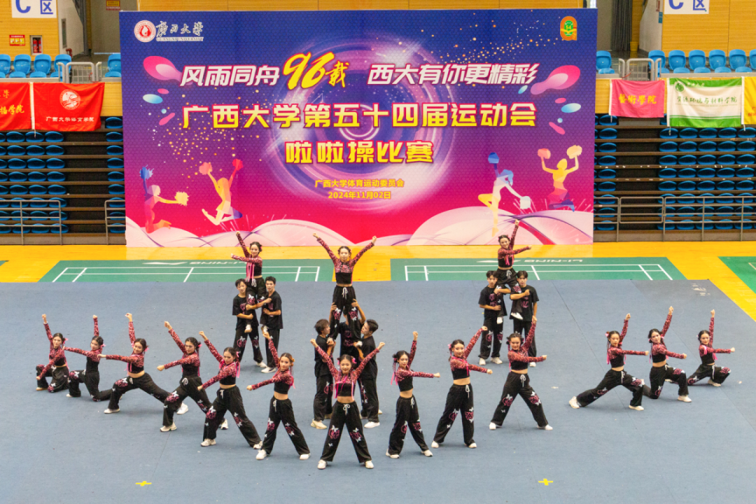 跳跃、旋转、托举...我院啦啦操队员们伴随着动感十足的音乐在现场跳动,他们动作整齐划一,充分展现了啦啦操运动的独特魅力和团队协作精神。赛场上,队员们个个精神饱满,脸上洋溢着自信的笑容,他们身着精美服装,黑色与粉红色的色调相互交织,充满了青春气息。他们配合默契,每一个眼神、每一个动作都传递着团结与力量。最终,凭借出色的表现与独具特色的编排动作,我院啦啦操代表队荣获此次比赛的二等奖。
