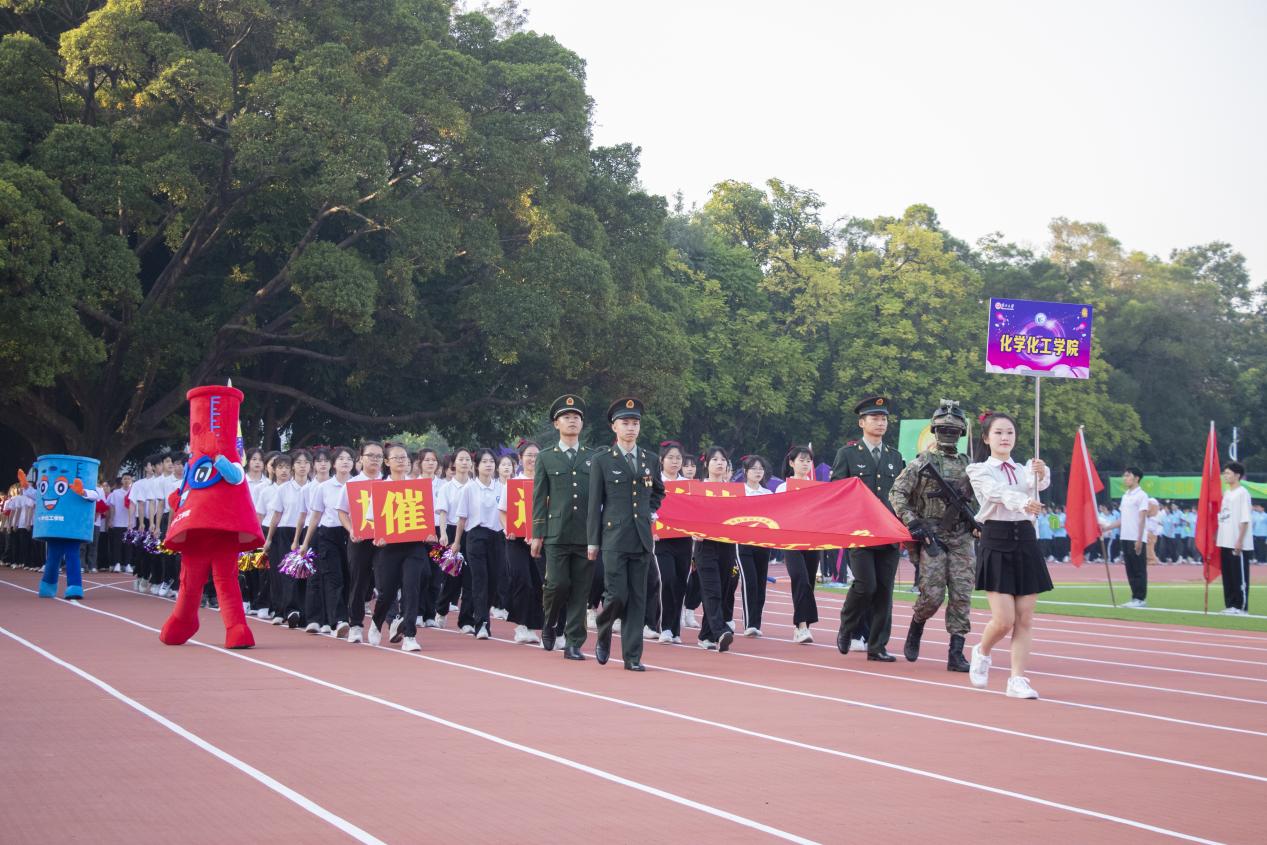 开幕式上,我院运动员组成的方阵迈着整齐的步伐,举着“催化梦想,加速前进”的纸板,昂首挺胸步入运动场。“化学化工,勇攀高峰,建设一流,再创新工”,运动员们齐声喊起响亮口号,体现了我院团结向上的精神风采。