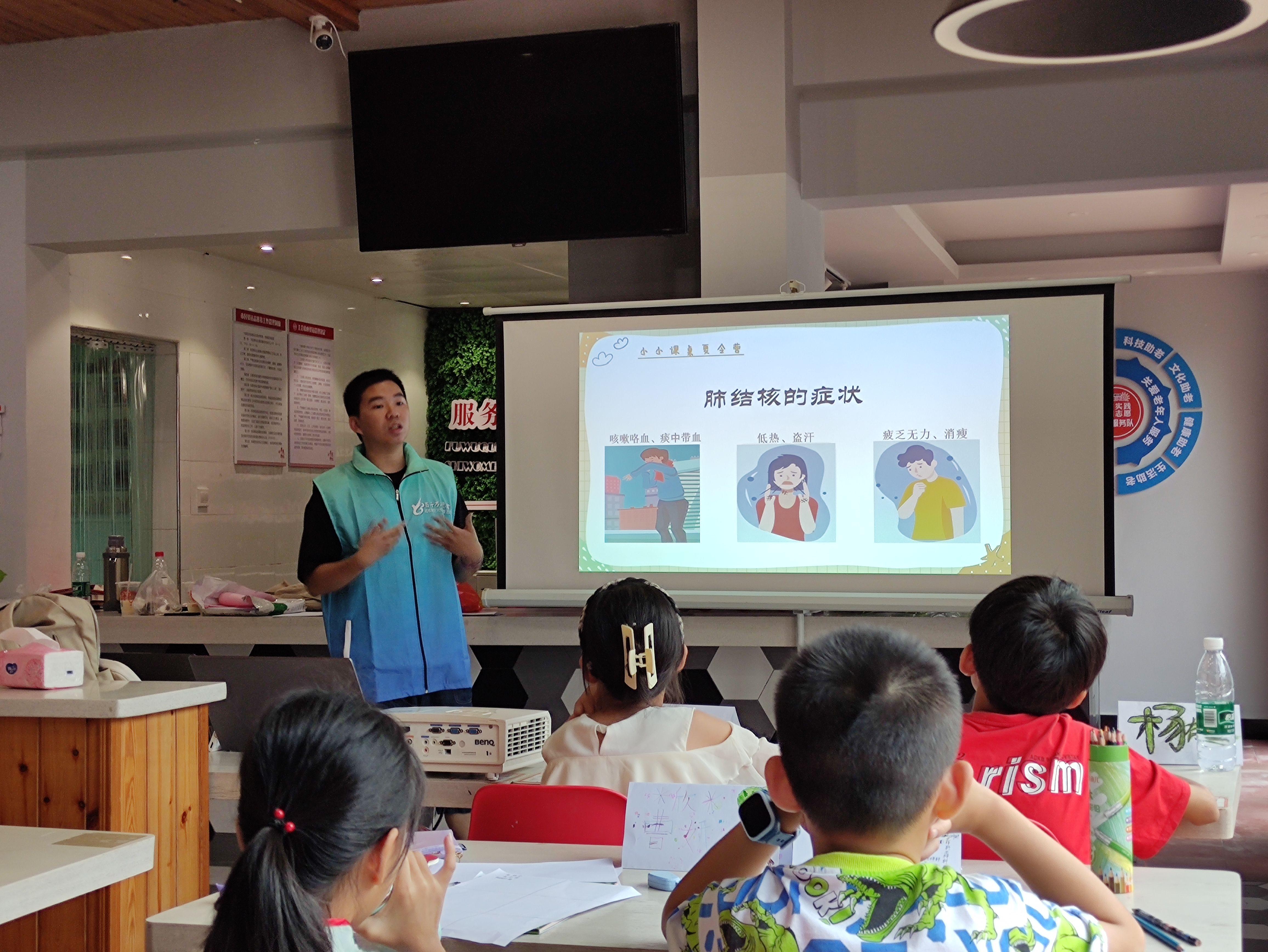 为深入学习宣传党的二十大精神,贯彻落实习近平总书记关于健康中国的重要论述和“从源头上预防和控制重大疾病”的重要指示,2023年7月26日-8月16日,黄色网站免费在线观看国产又色又粗又黄又爽闭义椿与来自黄色网站免费在线观看、广西师范大学的10名在读本科生返家乡组成“点亮星光”志愿宣讲团,协同广西壮族自治区北海市海城区东街团委,面向社区儿童、青少年有针对性地开展以“防治结核”为宣讲主题的“小小课桌夏令营”暑期社区志愿服务活动。