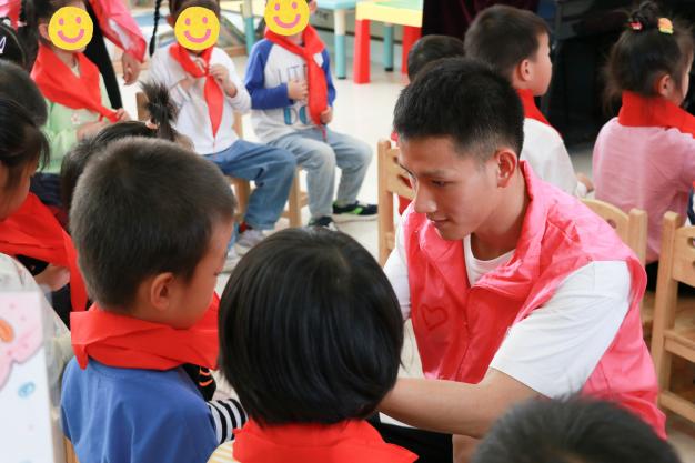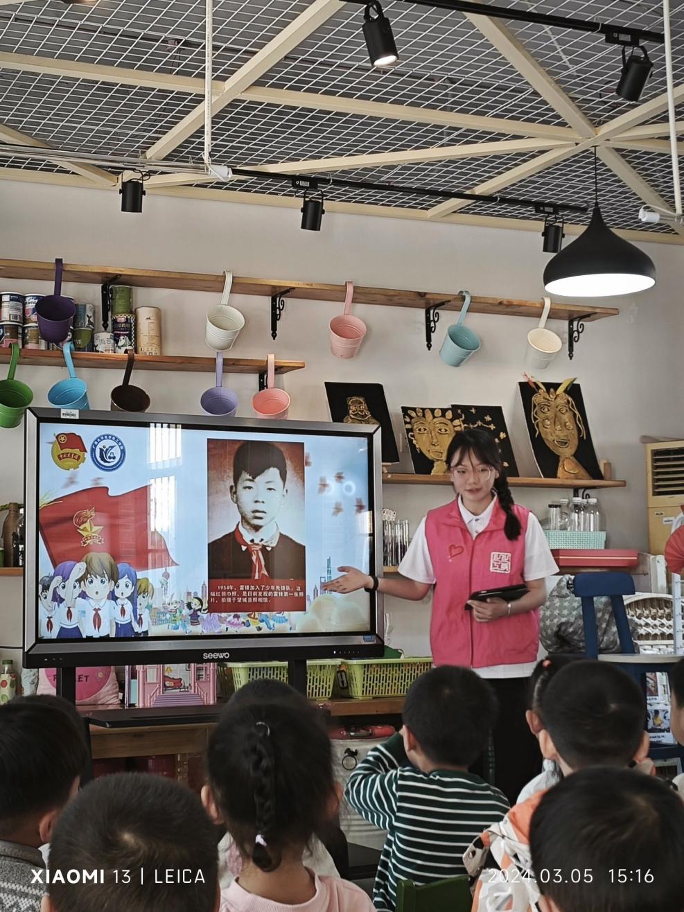 “鲜艳红领巾象征着热情与活力,正如乐于助人的雷锋叔叔那样......”志愿者以通俗易懂的语言,声情并茂地为孩子们讲述关于雷锋的故事,鼓励小朋友们要学会帮助他人。