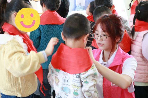 活动当天,志愿者还与孩子们一起聆听队歌,体验少先队员的入队仪式。而后进行创意绘画,在歌声和画笔于纸上的摩擦声中激发孩子们对成为少先队员的向往。