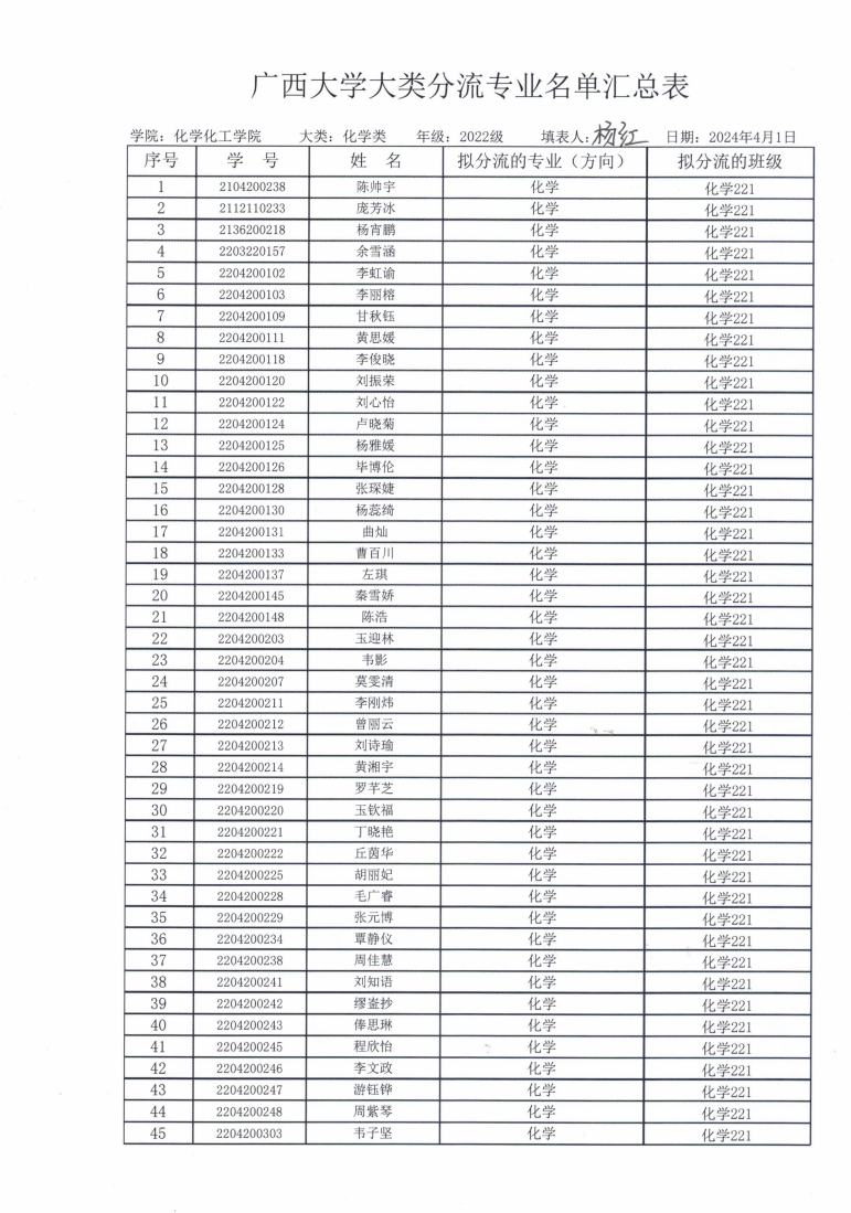 国产又色又粗又黄又爽2022级化学类大类分流专业名单汇总表(化学专业)