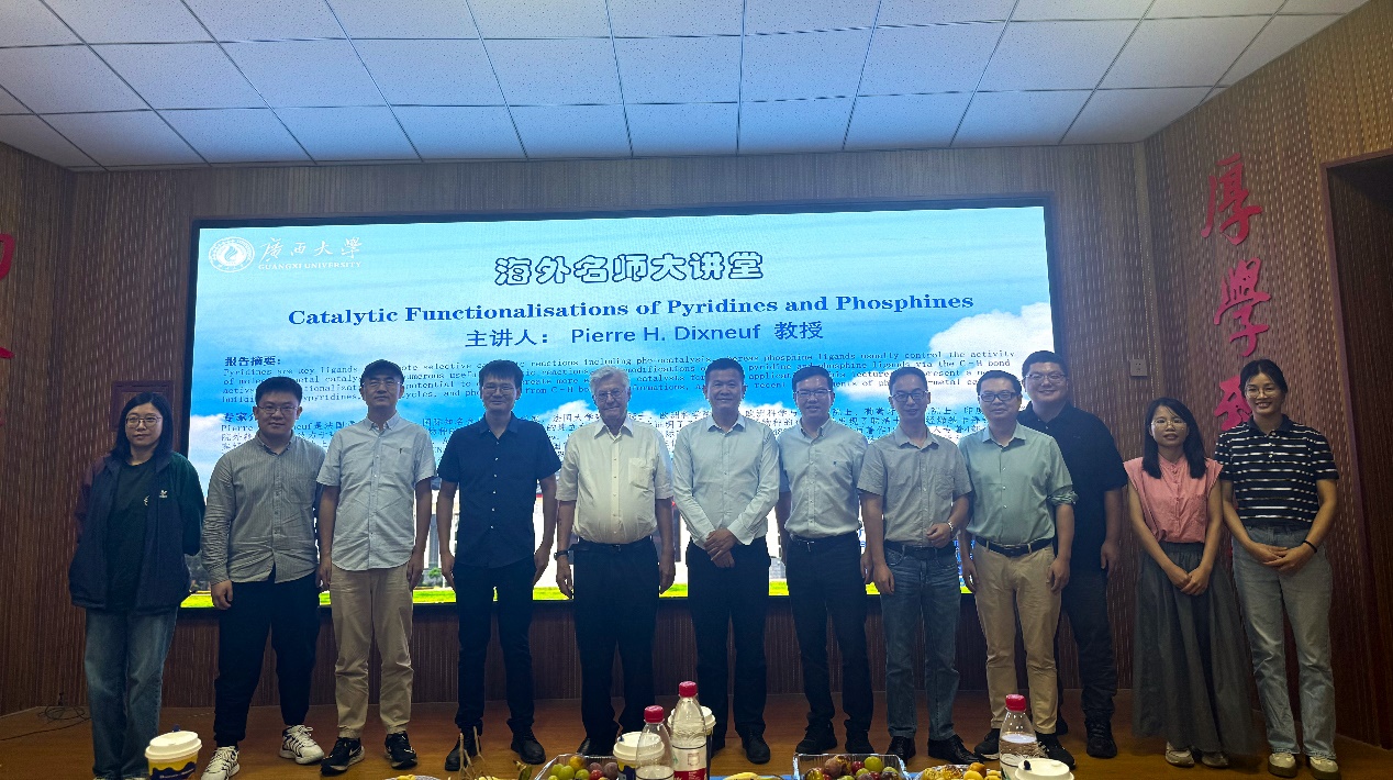 10月15日,法国雷恩第一大学(University of Rennes 1) Pierre H. Dixneuf教授受邀作客我院海外名师大讲堂,并以“Catalytic Functionalisations of Pyridines and Phosphines”为题为我院师生作学术报告,华南理工大学张珉教授受邀作题为“定向还原串联反应”的学术报告。学院副院长江俊主持报告会,两百多名师生参加报告会。