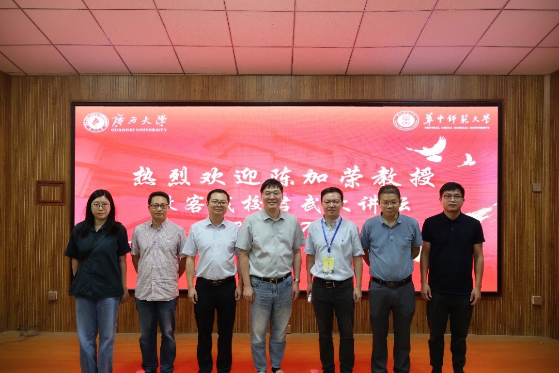 2025年7月4日,华中师范大学教授、国家重大人才工程特聘教授陈加荣应邀做客我院君武大讲坛,以“可见光驱动氮自由基合成化学”为题为师生作学术报告。报告会由学院副院长江俊主持,百余名师生参加。