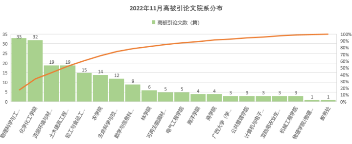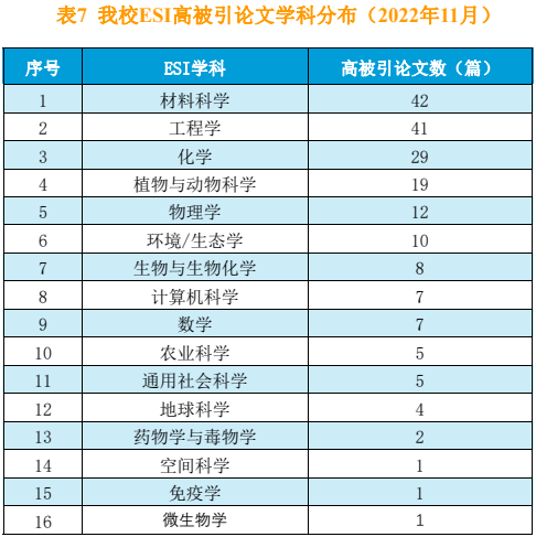 高被引论文数排名前三的学科领域依旧是材料学科(42篇、)工程学(41篇)和化学(29篇);分布在这三个学科领域的高被引论文数占比高达57.73%。其中国产又色又粗又黄又爽(32篇)位居全校高被引论文数排行榜第二。