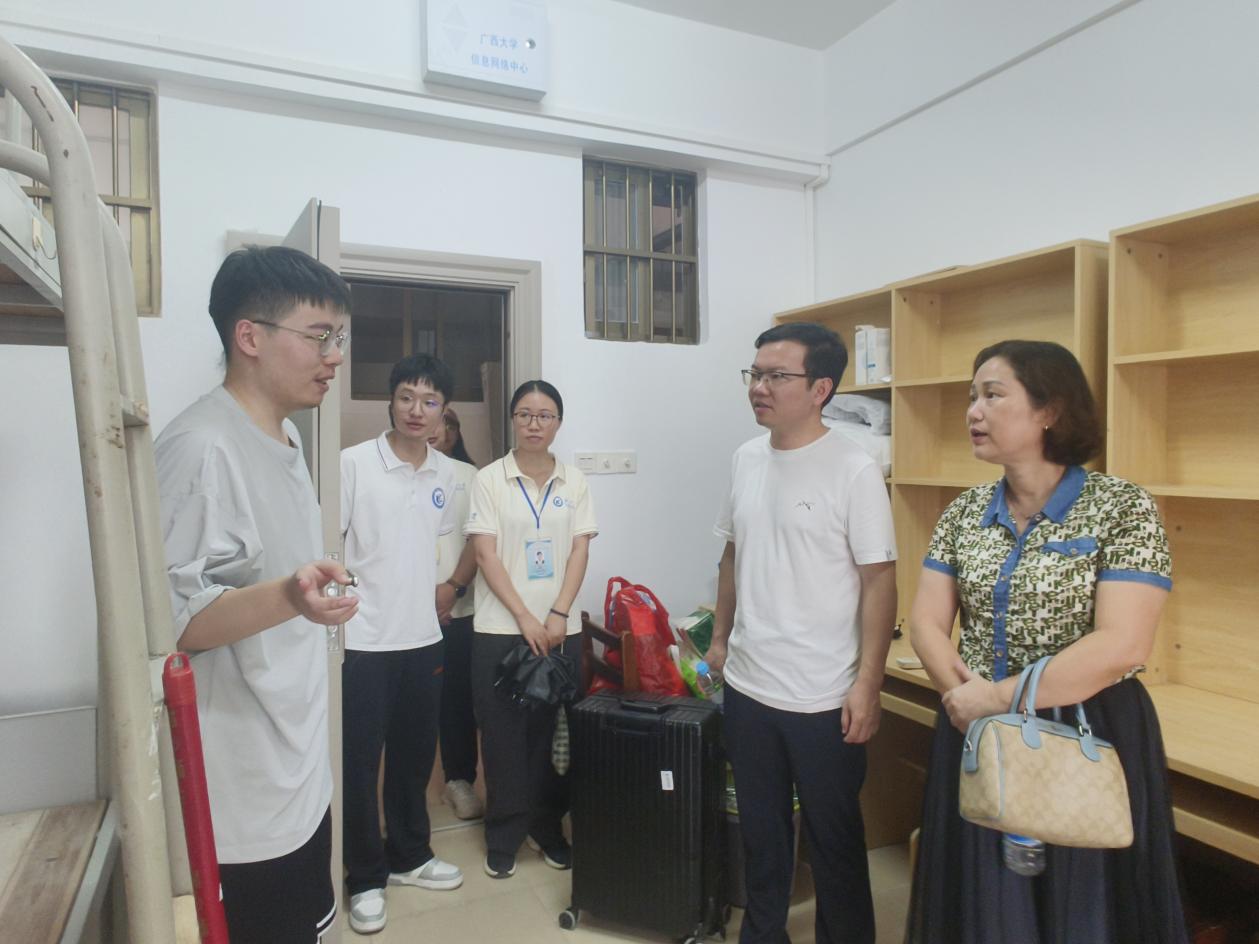为帮助新生更快更好地融入新集体、新环境、新生活,8月31日,我院党委书记、院长周立亚,党委副书记、纪委书记刘丽率队深入我院2024级新生各宿舍,与新生面对面交流,了解新生到校后的有关情况,沟通解决遇到的问题和困难。副院长尹诗斌、江俊、许雪棠及院长助理、新生班主任、辅导员等参加活动。
