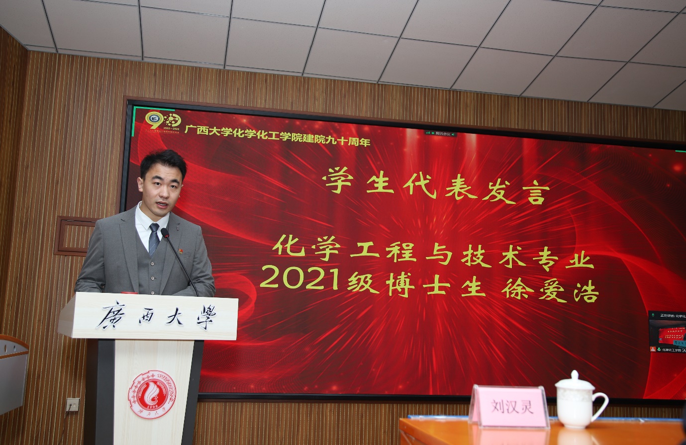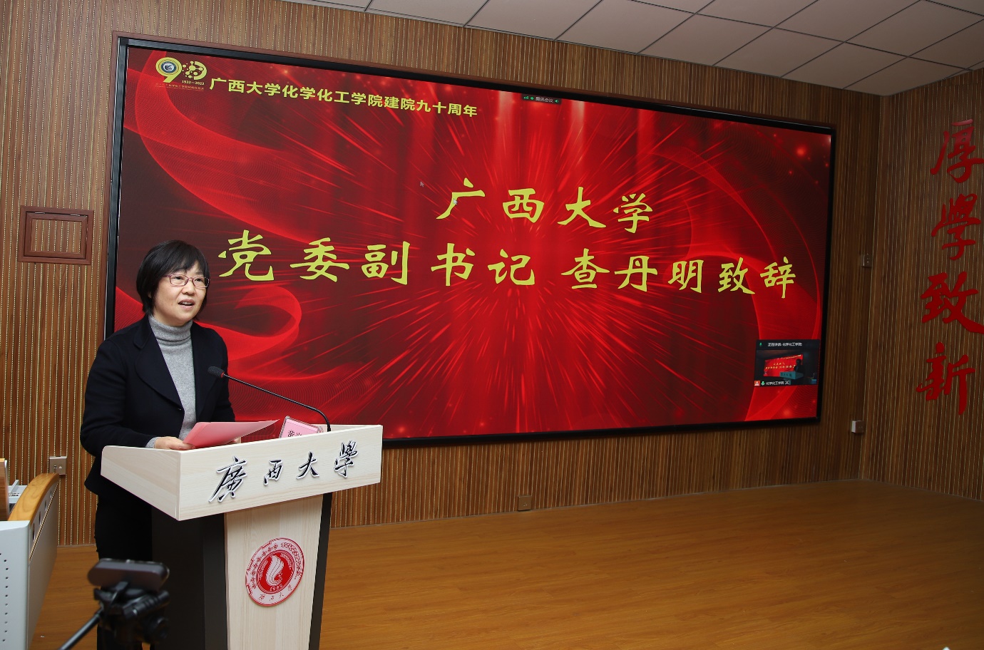 九十载沧桑砥砺,九十载春华秋实!黄色网站免费在线观看国产又色又粗又黄又爽12月10日下午在化院1号楼举行了隆重而简朴的建院90周年庆祝大会。会议以线下+线上形式同步举行,线下主会场有学院校友、院友、师生代表参会,同时设立了9个分会场,分别为学院柳州、南宁、桂林、梧州/贺州、百色、广东、钦州/北海/防城港、河池、京津冀校友分会会场,同步视频连线共庆学院九秩华诞。会议由国产又色又粗又黄又爽党委书记、院长周立亚教授主持。
