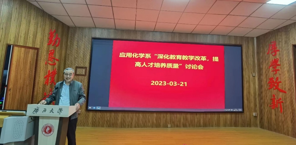 化学系全体教师召开了“化学系深化教育教学改革提高人才培养质量讨论会”。学院党委书记、院长周立亚传达了学校关于“深化教育教学改革提高人才培养质量”大讨论的精神,要求准确把握新时代高等教育发展的新形势、新使命和新要求,建立和营造有利于高层次人才集聚和教师成长成才、创新创造的制度和环境,引导教师成为“四有好老师”和“四个引路人”。与会人员围绕学校发展目标与建设思路、本科教育教学改革与发展、质量保障体系建设、学风建设与学生发展、师德师风与教师队伍建设和教学资源与利用等几个专题展开了热烈讨论。