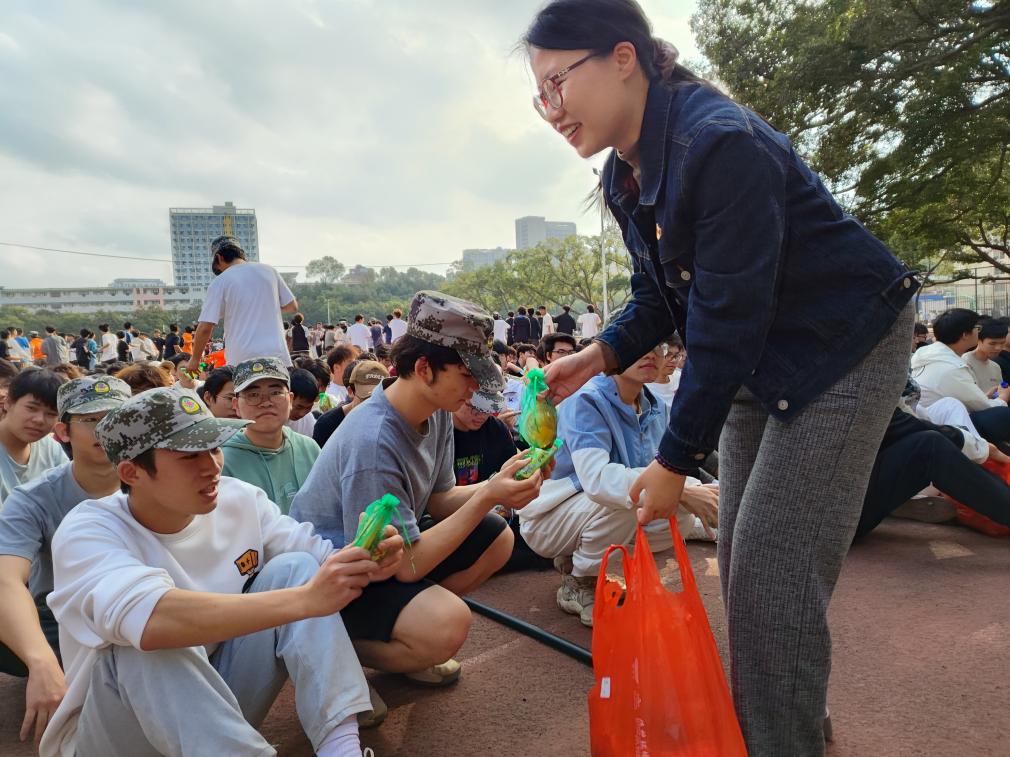 来自化学工程与工艺专业234班的同学姚溪清表示:“今天收到了老师们的亲切鼓励和学院送来的慰问品,感受到了学院的关怀,接下来会继续努力,认真完成训练”。