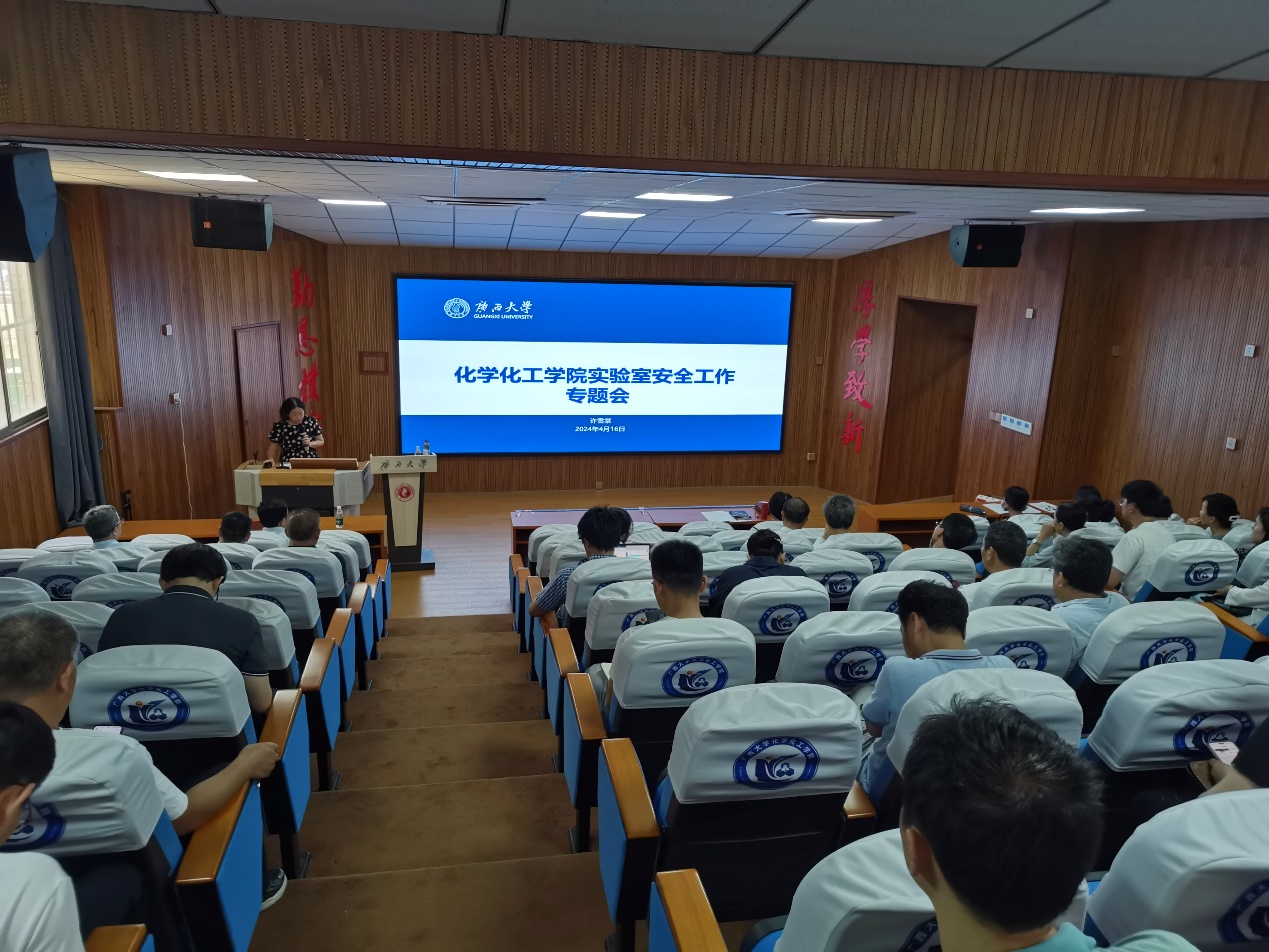 4月16日,我院召开实验室安全工作专题会,进一步传达我校关于实验室安全工作的最新要求,部署安排我院安全隐患排查整改工作。会议邀请我校国有资产与实验室管理处副处长甘正华作专题报告,我院党委书记、院长周立亚主持会议,学院领导班子成员及全体教职工参加会议。