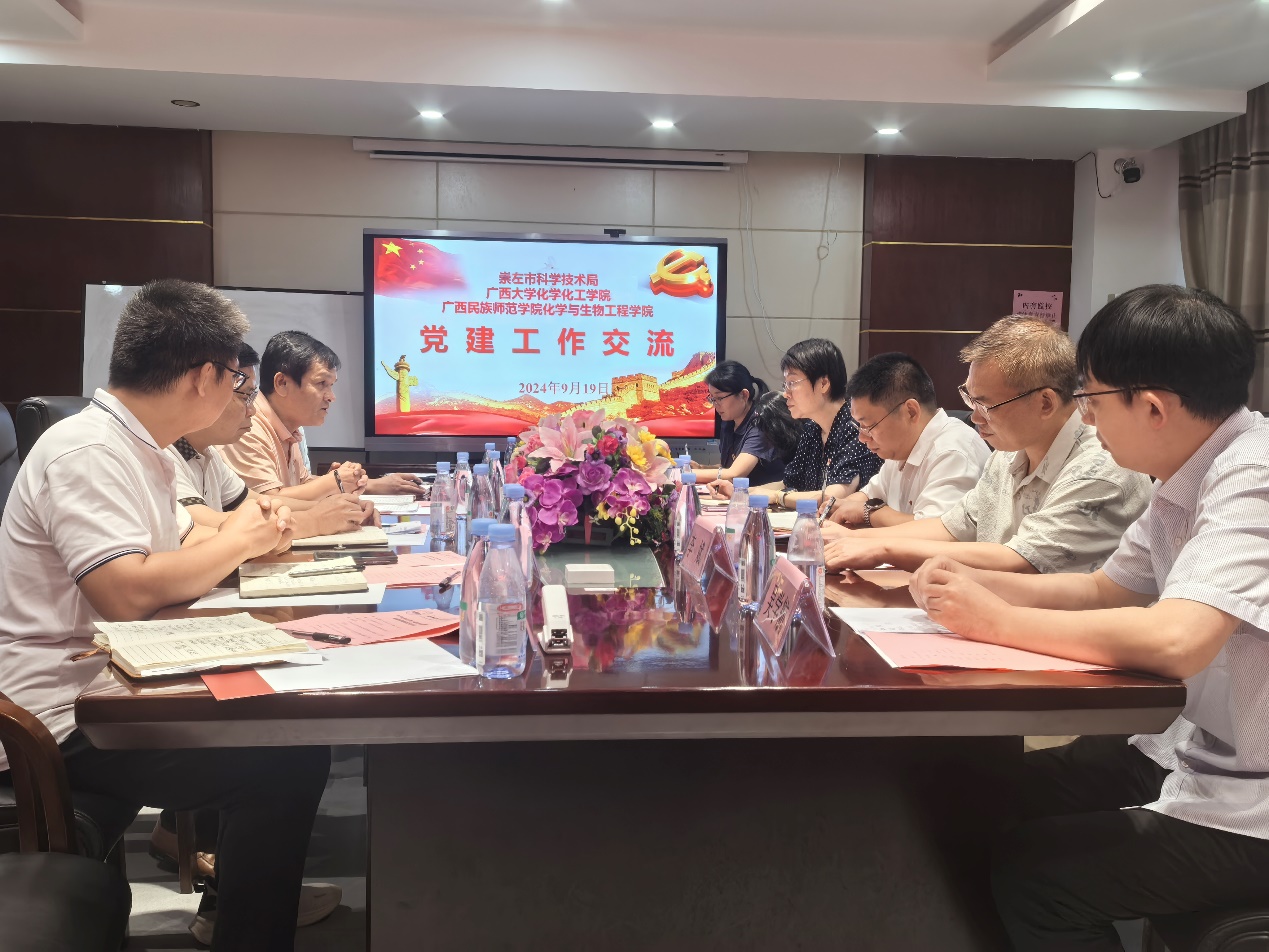 当天,我院还与崇左市科学技术局、民师院化学生物学院开展党建工作经验交流,分享了各自在党建工作中的特色做法和亮点成效。大家表示应继续探索新时代高校党建工作的新思路、新方法,助力学院各项事业高质量发展。