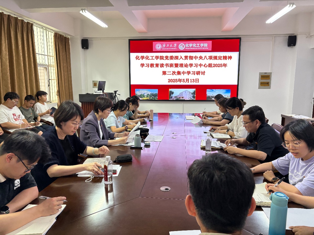 5月13日,我院党委开展深入贯彻中央八项规定精神学习教育读书班暨理论学习中心组2025年第二次集中学习研讨会。学院党委书记周立亚主持会议。