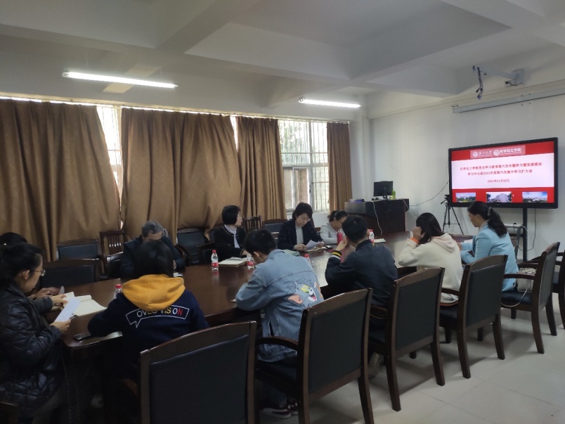 围绕学习主题,学院部分党支部书记进行了自由发言,交流分享学习贯彻中国共产党第十九届中央委员会第六次全体会议精神和学习《中共中央关于党的百年奋斗重大成就和历史经验的决议》的心得体会。