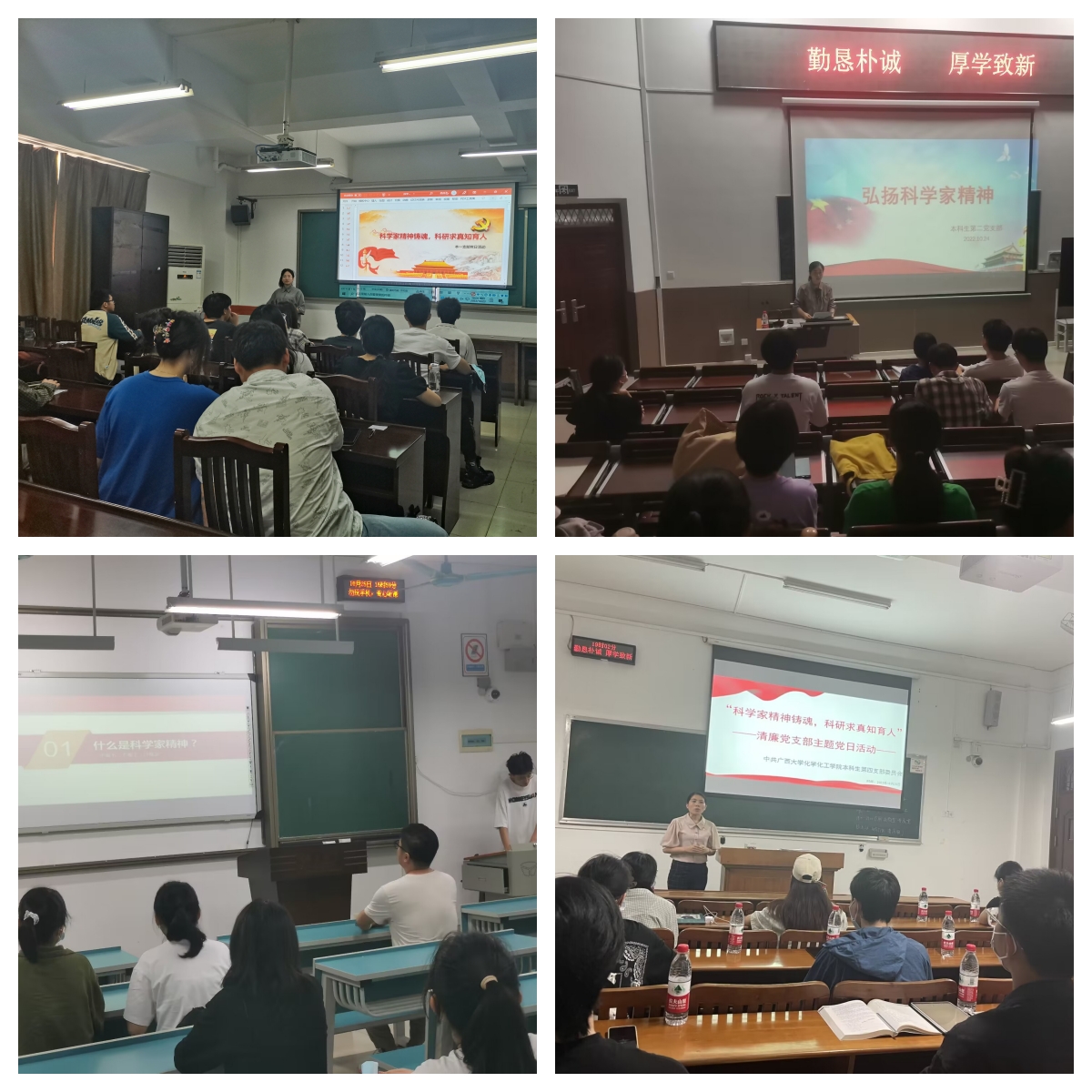学生党支部结合学习实际,积极开展主题党日,学习科学家为国家富强、民族振兴、人民幸福而忘我奋斗的科学家精神。