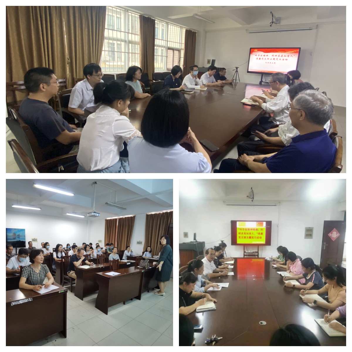 教师党支部结合教学和科研工作,认真开展主题党日,学习忠于祖国、追求真理、勇于创新、敢为人先的科学家精神。