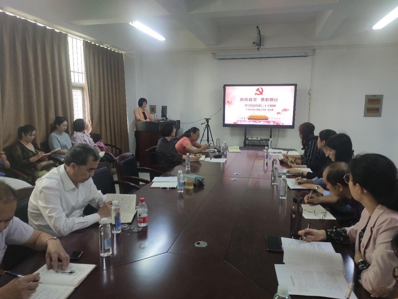 会议还专题学习研讨了新修订的《中国共产党章程》及其他事项。会议指出,党章是党的根本大法,是全面从严治党的总依据和总遵循,也是全体党员言行的总规矩和总遵循。修改党章是深入学习贯彻党的创新理论的需要,是深入推进新时代党的建设新的伟大工程的需要,是贯彻落实党的二十大精神的需要,修改的内容更有利于发挥党章的规范和指导作用。大家纷纷表示:要坚决落实党中央部署安排,踔厉奋发、勇毅前行,为学校“双一流”建设,学院发展贡献自己的力量。