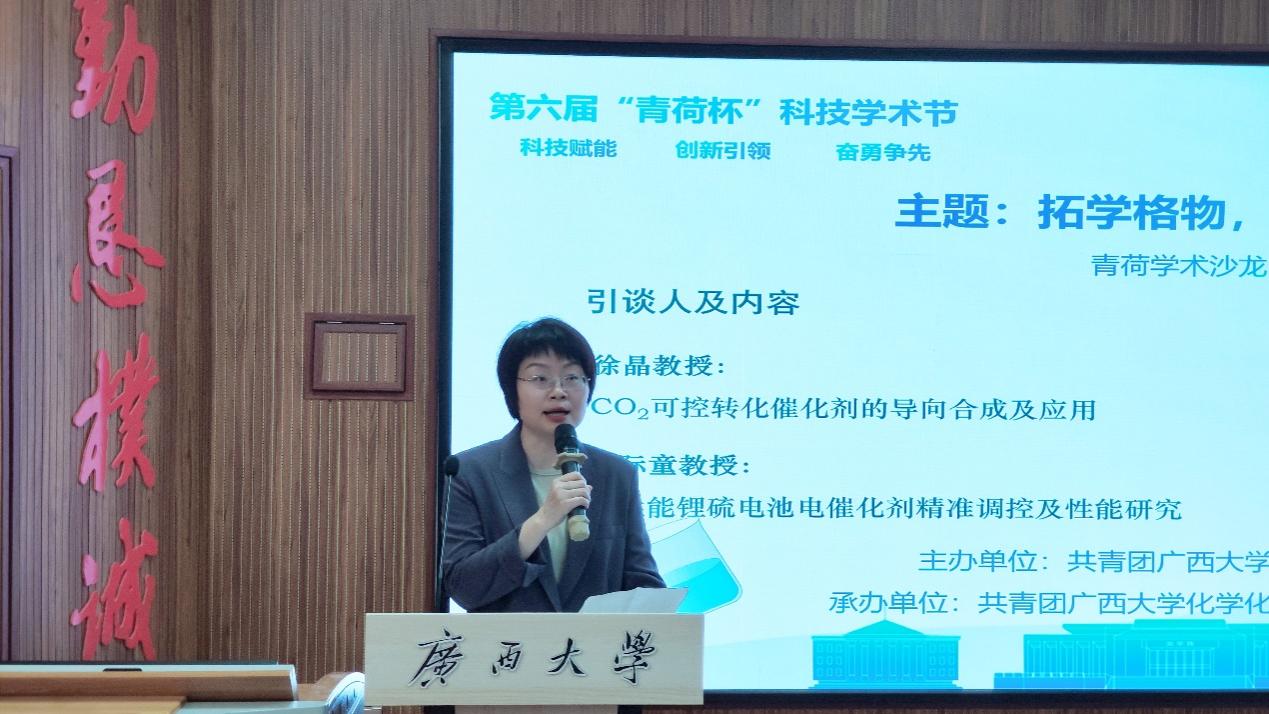 On March 26, the 4th session of the 6th "Qinghe Cup" Science and Technology Academic Festival of Guangxi University, sponsored by the Youth League Committee and undertaken by the Youth League Committee of our college, was held in the Calcium carbonate lecture Hall of Building 1 of our college. Zhou Liya, Secretary of the Party Committee and President of the College, attended the event and delivered a speech. Liu Li, Deputy Secretary of the Party Committee and Secretary of the Commission for Discipline Inspection, Jiang Jun, vice president, teachers and student representatives of each college attended the event.